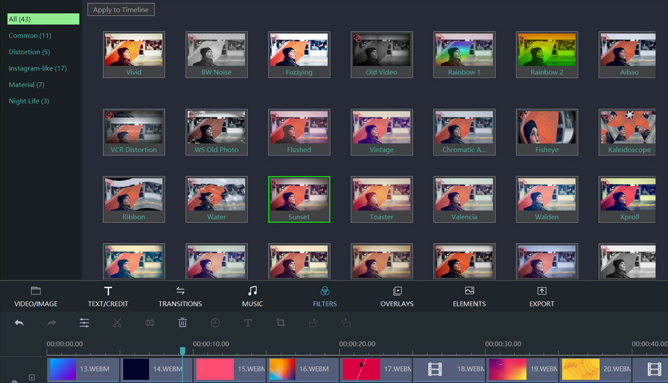 Der er meget mere visuelle effekter for brugere at vælge, såsom overgange, filtre, overlays og elementer. Disse effekter kan gøre din video rig og gøre din video attraktiv.